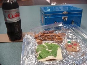 Lunch was same as always for M-F. Morningstar Farms chicken patty with American cheese and lettuce, 11 pretzel crisps and 1 chips deluxe rainbow cookie. I also had a Diet Coke to drink. We bought Diet Coke when Mariann and Jena came over and I am loving getting to finish them with my lunch.