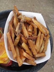 We did some walking around the festival and I decided to get some Fresh Cut Fries. I went to the same vendor as the Oreo’s and got the fries. They literally put them in the slicer when you order them and then fry them. These fries were delish. They looked like they were over-done however, they were perfectly cooked. They were lightly seasoned with salt and I also had a ketchup/yellow mustard combo. Most of the fries, I ate without any ketchup/mustard – they were that good. My only complaint is that when I got to the bottom of the basket, there were some really small pieces. I like to eat all the small pieces of things before the big pieces so this was just a personal thing. Overall Rating: 9/10.