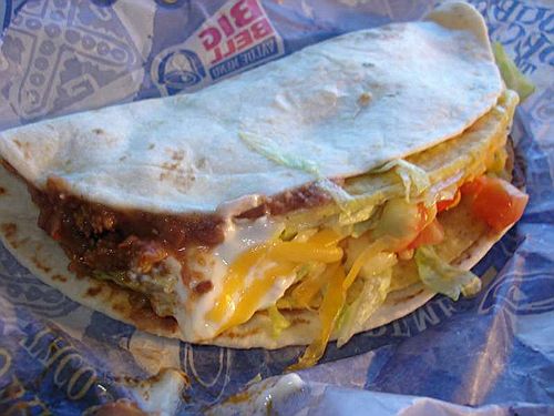 The Double Decker Hard Taco Supreme is one of the items on Taco Bell’s menu that I don’t really think gets any credit. It’s like the MexiMelt…you have probably never even heard of it. The DDHTS does not come in any of the value meals but is always available. The DDHTS consists of a hard taco supreme (shell, ground beef, sour cream, lettuce, cheese, tomato) that is within a soft shell with a coating of refried beans to hold the two together. We frequently make these at home and they are quite delish. It may sound like a huge entity but the soft shell does a great job of holding the hard shell taco & all of its toppings, together in one piece. I always order at least one DDHTS when I visit Taco Bell unless if I am ordering Bean Burritos.