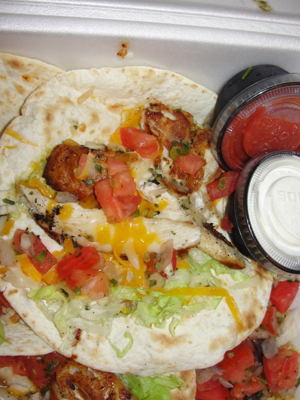 In addition to the tortilla and mahi mahi, these tacos include the variety of toppings I mentioned above. The pico de gallo is fresh and very good. I enjoy the flavor the pico puts out from the simple & fresh ingredients. The lettuce and cheese are also fresh and tasty. On each taco, I always seem to receive a different amount of the chipotle-cilantro sauce. Sometimes it’s just enough and other times, they put way too much. On this batch of tacos, I received a decent amount. The flavor of this sauce is a good mix between chipotle and cilantro – it is neither too spicy or flavorless. The sauce is usually right on top of the mahi mahi or on the tortilla itself.