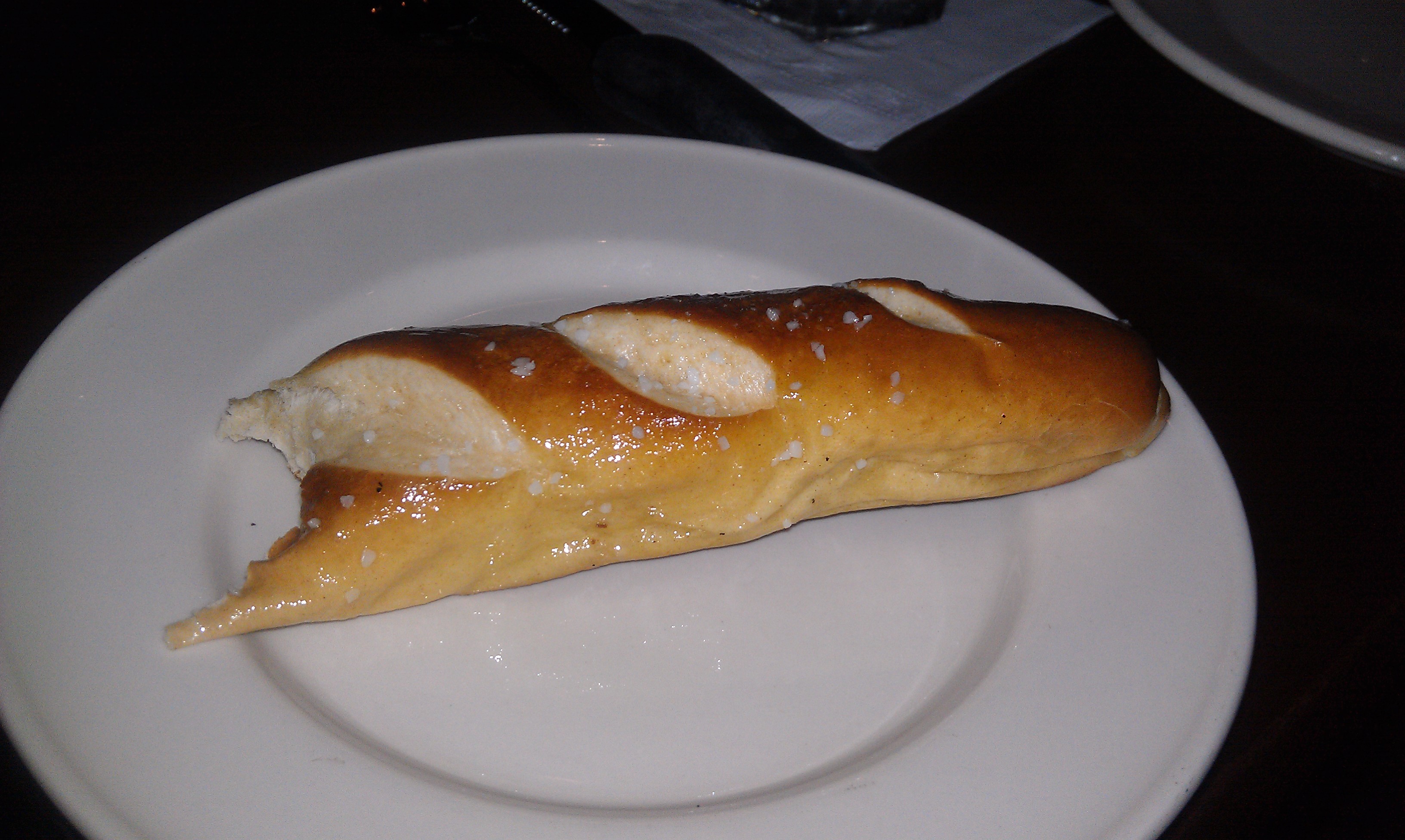 Creepy waiter brought over our bread and it was different than it had been before. You were now served bread sticks and mini-loaves. The bread sticks appeared to have a butter & salt coating and the mini-loaves looked to have herbs baked in. I first started with the bread sticks and was expecting them to taste like a soft pretzel stick. Sadly, they did not. The stick was warm yet overly buttered and lacking actual flavor. While the bread was cooked perfectly, it simply did not have any real flavor – besides the coating of butter & salt. The mini-loaves were the exact opposite – wayyyyy too much flavor. The herbs baked in overpowered the bread and made each bite taste like a mouth full of herbs. No mouths full of joy for me. Bread = fail.