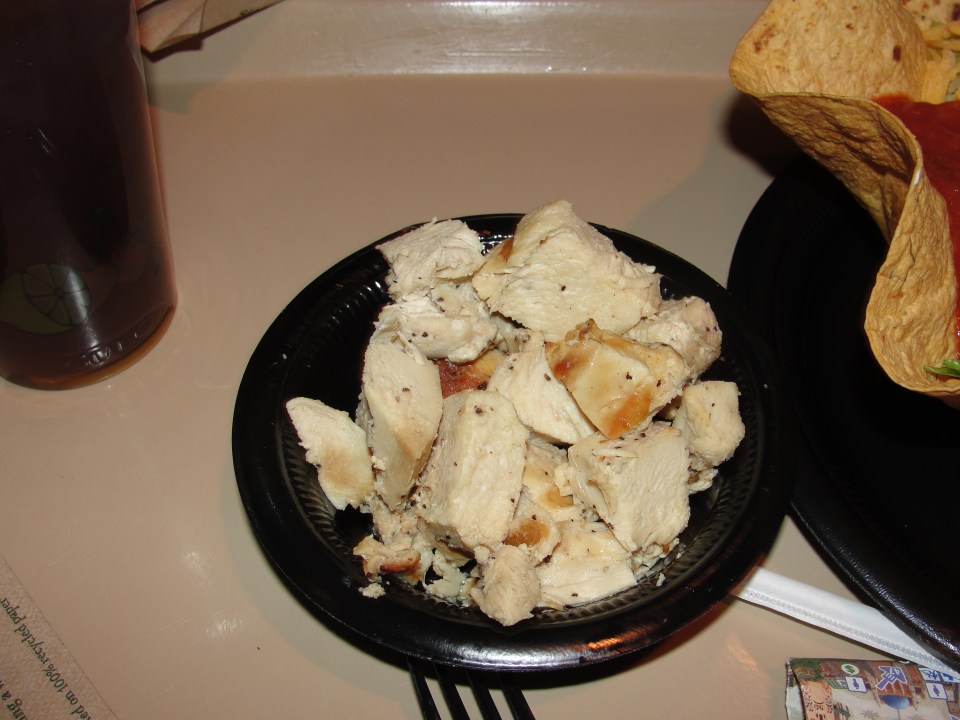 The salad looks surprisingly so good. The bowl was full of a mixture of lettuce with toppings of salsa, chopped tomatoes, red onions (which were removed right away), shredded cheese and sour cream. I was also so impressed with the amount of chicken that I received and how decent it actually looked. I mixed all of my bowl together but decided to keep the chicken on the side. I started eating the bowl mixture first because the chicken was quite warm. I was shocked to find the lettuce was extremely fresh, crisp and tasty. You would easily taste the varieties of lettuce that were included and they were all equally good.