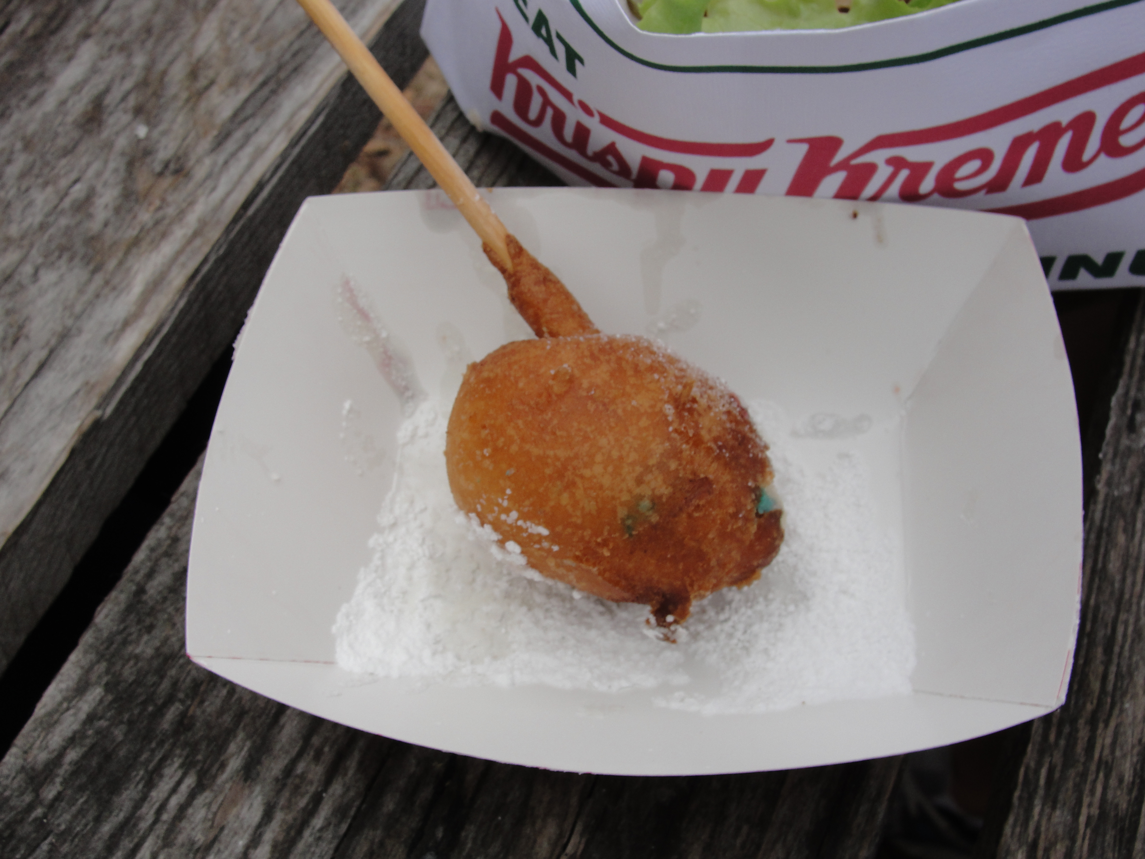 As I may have mentioned a time or two before, I have a soft spot for Fried Oreos. I absolutely love the sweet smell and flavor that they produce. Sadly, I did not get any at the Fair and there is no telling when I will have them next. Yes, the offered them but we were here for the crazy and outrageous. As we walked around, we saw signs advertising Fried Butter, Fried Bubble Gun, Fried Kool Aid and more. None of these items sounded even remotely good so we bypassed them all.