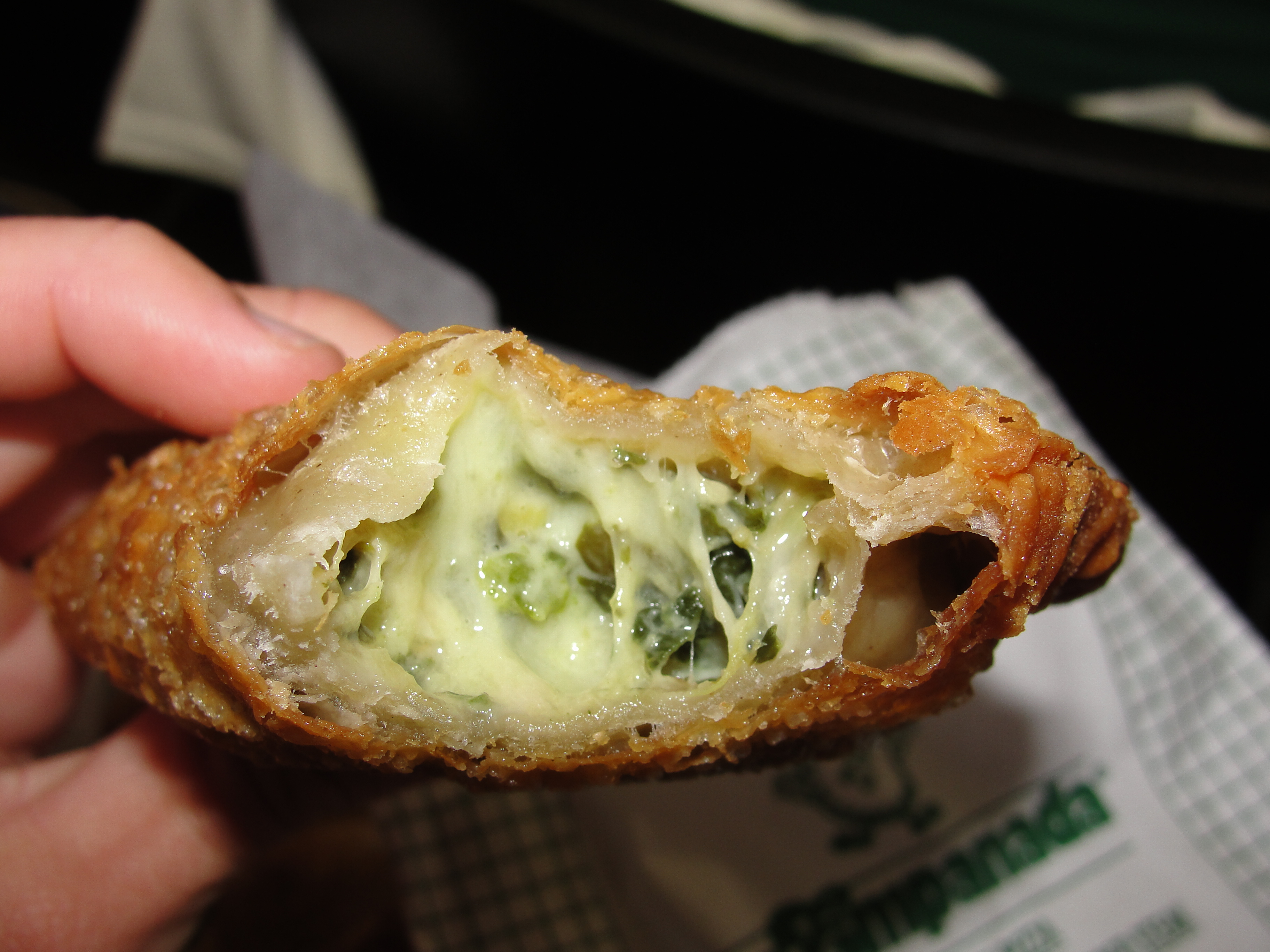 Now, the inside fillings were even better. The ratio of spinach to artichoke to cheese was spot on. I never felt as if I had a mouth full of any one filling. Rather, the fillings all worked together to produce a great flavor. The spinach and artichoke pieces were plentiful, fresh and tender. The cheeses used within the empanada were so melty and smooth and paired so well with the spinach & artichoke. I could have eaten this filling in a bowl with nothing but a spoon.