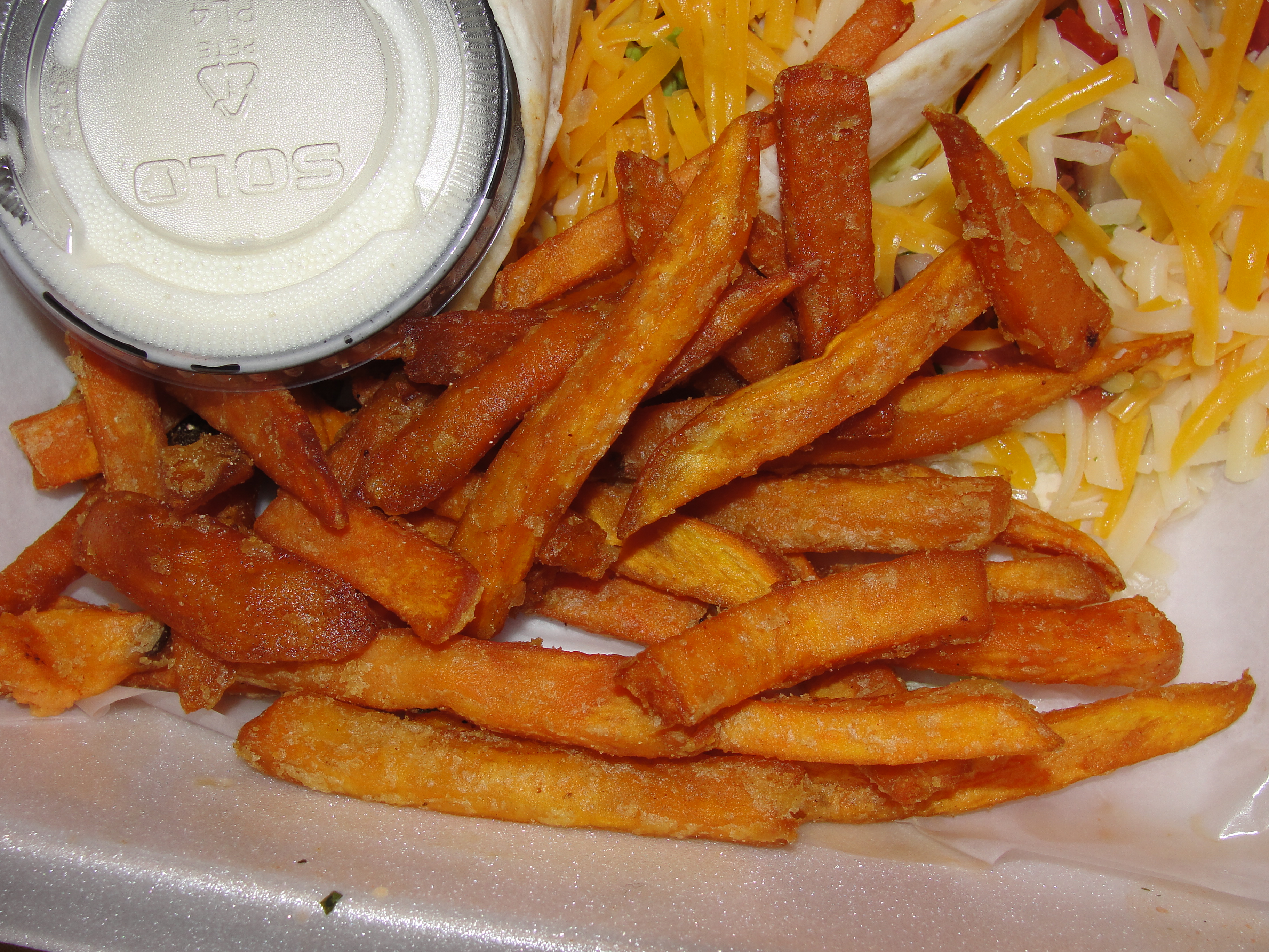 At first look, these sweet potato fries looked like winners. They were all good in size and none seemed to be too thick or too thin. They also smelt great. These were served with a cinnamon-butter which I did not have. I like my sweet potato fries just plain. If done right, they produce all of the flavor you could even need, want & desire.
