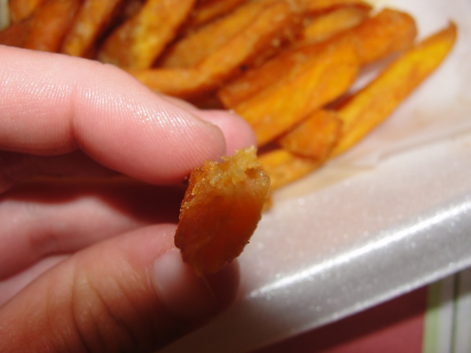 I did find that some of the fries were a little too soft inside which produced a much more starchy taste and flavor. It was almost like some of them had chopped sweet potatoes inside. The end taste of these particular fries was not good at all. It wasn’t the fact that the sweet potato taste was overbearing – it was the fact that I felt like I was eating fries with the interior consistency of thick baby food. The thought of baby food alone makes me want to throw up so feeling as if the interior of these fries was baby food-like, was enough to put me over the edge.