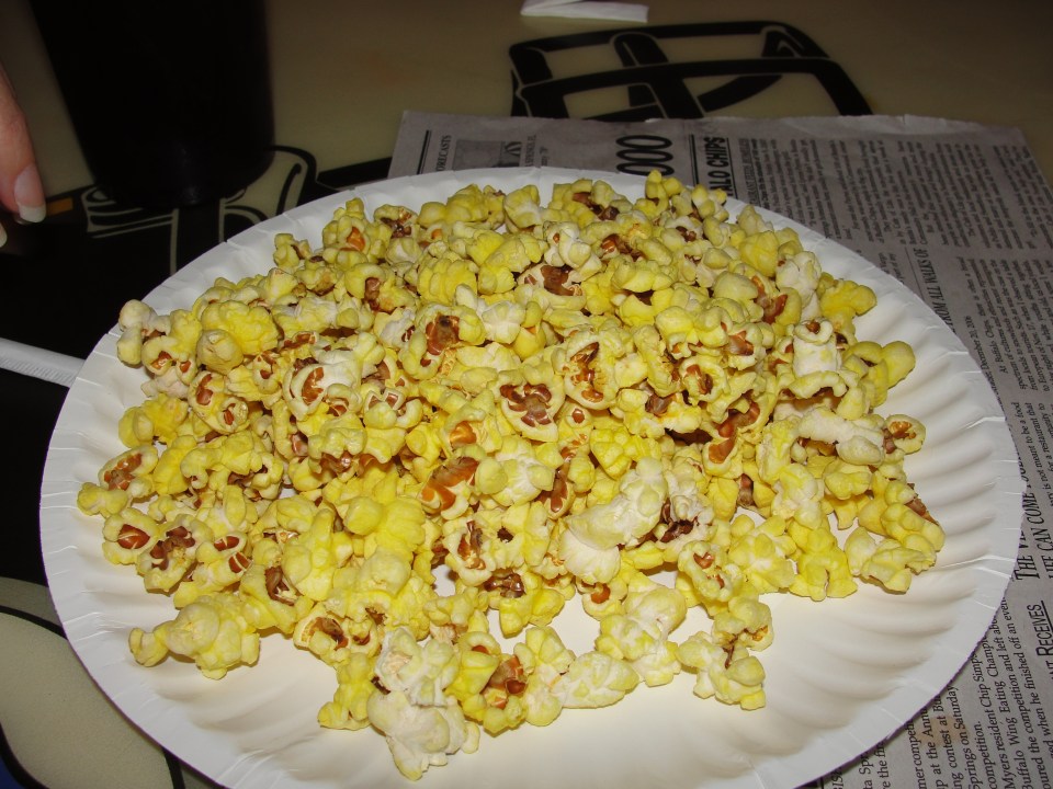 Prior to this years trip, I had never ordered wings as my meal. I really don’t like wings and they normally upset my stomach. But, every time we go, I have a wing and say how great it was and how I will certainly get them next time. Well, next time finally arrived and I ordered 10 BBQ wings for my meal. Mommy and Taylor both got Mild Wings and we ordered a basket of straight cut fries to share. While waiting for our food, Buffalo Chips has a popcorn machine which I, of course, got 2 plates worth of to share. The popcorn was not hot but hit the spot to hold us over for wings. The popcorn is so overly buttered in taste and oh so salty – two things I never normally like. But, for whatever reason, it tasted great and we easily ate two plates worth. Getting the popcorn is a must when you visit Buffalo Chips. Plus, it’s free!