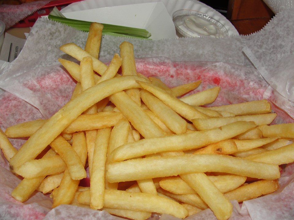 The wings are so good on their own, that the addition of blue cheese is really not needed. I did dip some of the celery into it and eat it between wings along with some fries. These fries were good, hot and tasty. Straight cut fries in their simplest form. They were seasoned only a bit which allowed the fry to have a very basic taste – a good compliment to the saucy wings. The interiors are fluffy and the overall fry is good. I wouldn’t say these are the best fries ever but, I do think these are the best fries to compliment the wings. Buffalo Chips also offers buffalo chips and curly fries but to me, the straight fries are by far the best option.