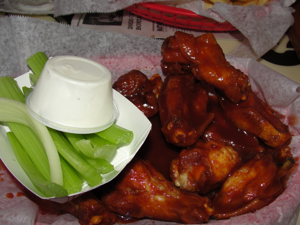 After waiting a bit, our food arrived. Well, most of our food arrived. My wings were nowhere to be found. This didn’t really surprise me because the service is really not too great. After waiting a few more moments, my wings made it to our table and I had to control myself from plowing right into them. Wow, did they look great. Buffalo Chips serves up the biggest wings I have ever seen and they were no exception. Served with a side of blue cheese and celery, I was so ready to dig in.