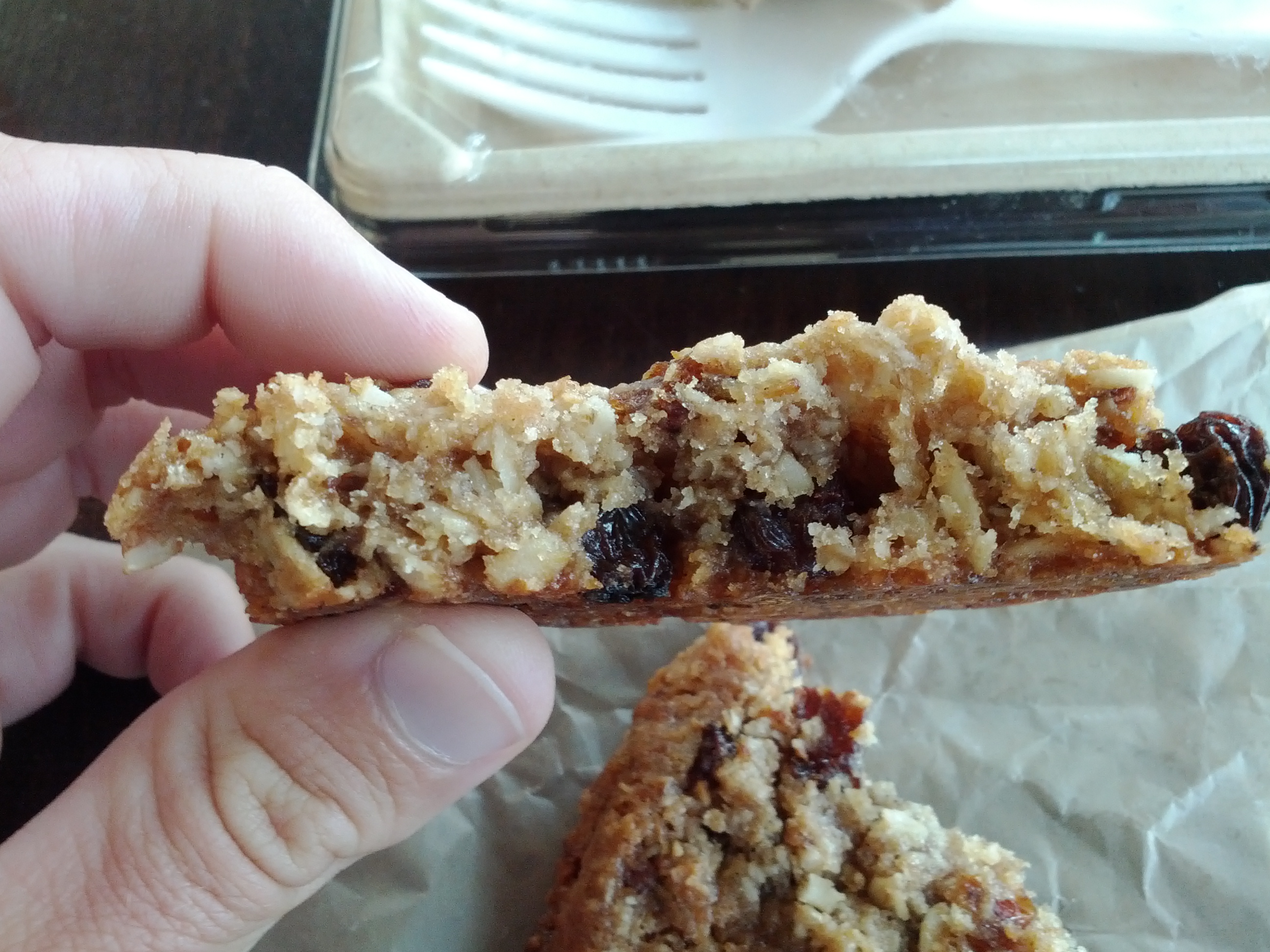 After finishing my great sushi, I moved onto my very first Vegan Cookie. Well, I am happy to report that it was just as tasty as a Non-Vegan Cookie. I had an Oatmeal Raisin Cookie and was impressed with the freshness of the ingredients. The raisins included were plump and juicy and paired well with the basic oatmeal and spices of the cookie. Every piece of the cookie was chewy, semi-dense and perfectly sweetened. If I had not known that this cookie was vegan, I would have never realized. Certainly good and one I would buy again.