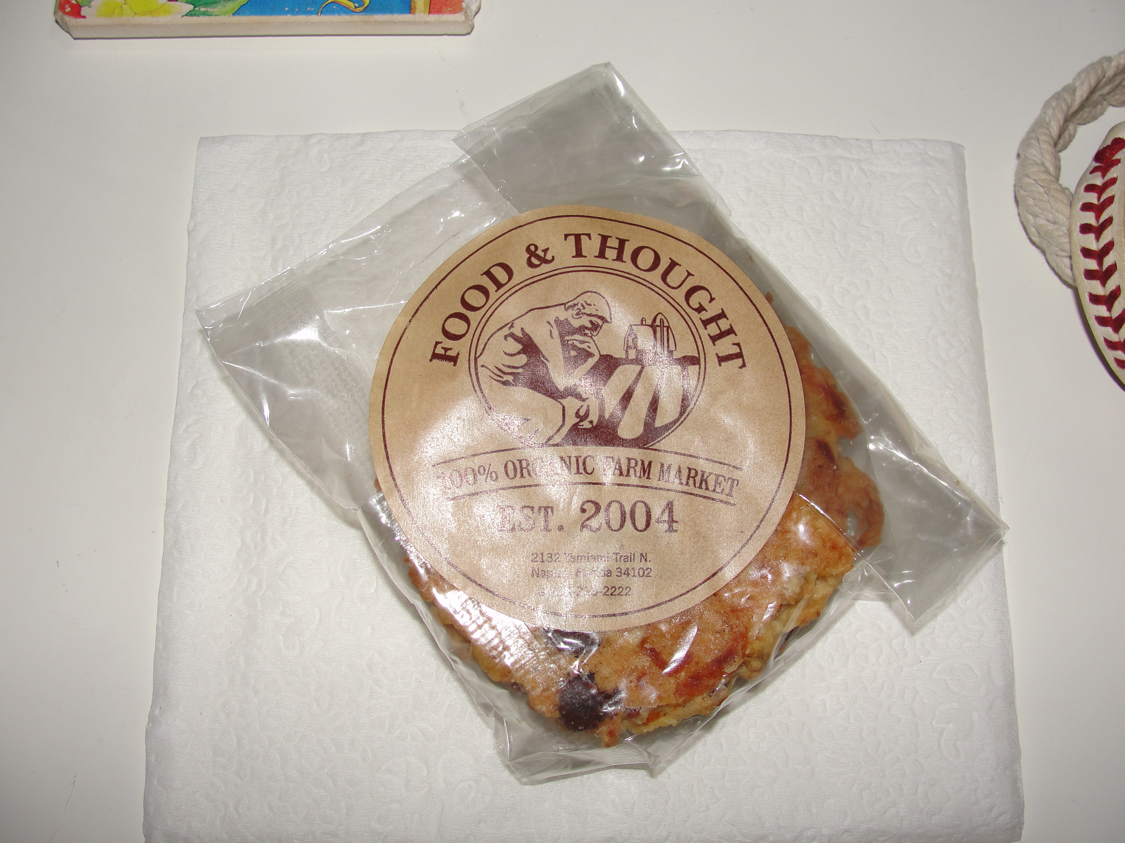 Located in this grand city of Naples, Florida is a market/restaurant called Food and Thought. F&T offers a variety of Organic items in both market and restaurant form. Even though I am a Neapolitan, I can say that I have never visited F&T. Why you ask? Well, no reason really. I just simply never have gone. I have also never had an item from either the market or restaurant. That was until I tried my first item last week – a cookie. Acquired via my boss at work, I was excited to not only try this cookie but, write the review to follow.