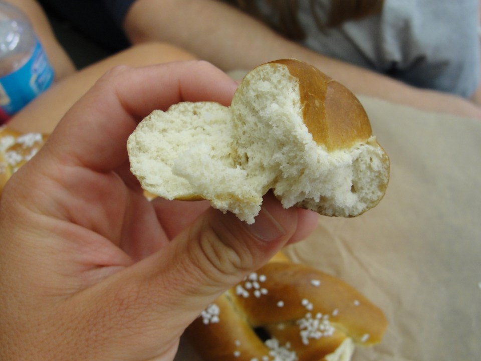 Before I even made my way back to my seat, I took a bite of this pretzel. While the shape was unique, the taste was familiar and fabulous. The exterior of the pretzel was just a tad crispy while the interior was soft as soft can be. My first bite was absolutley delicious and I can still recall the taste. Once I got back to my seat, I continued to eat my Super Twist and found every bite to be just as good as the next. The interior of the pretzel was so soft and the taste was spot on. Similar to a doughy bread, the pretzel had a semi-sweet dough that melted in my mouth. While the exterior had just a touch of crisp, it wasn’t really crispy or hard – no complaints with this. The exterior had just as much flavor as the interior but the texture was indeed different.