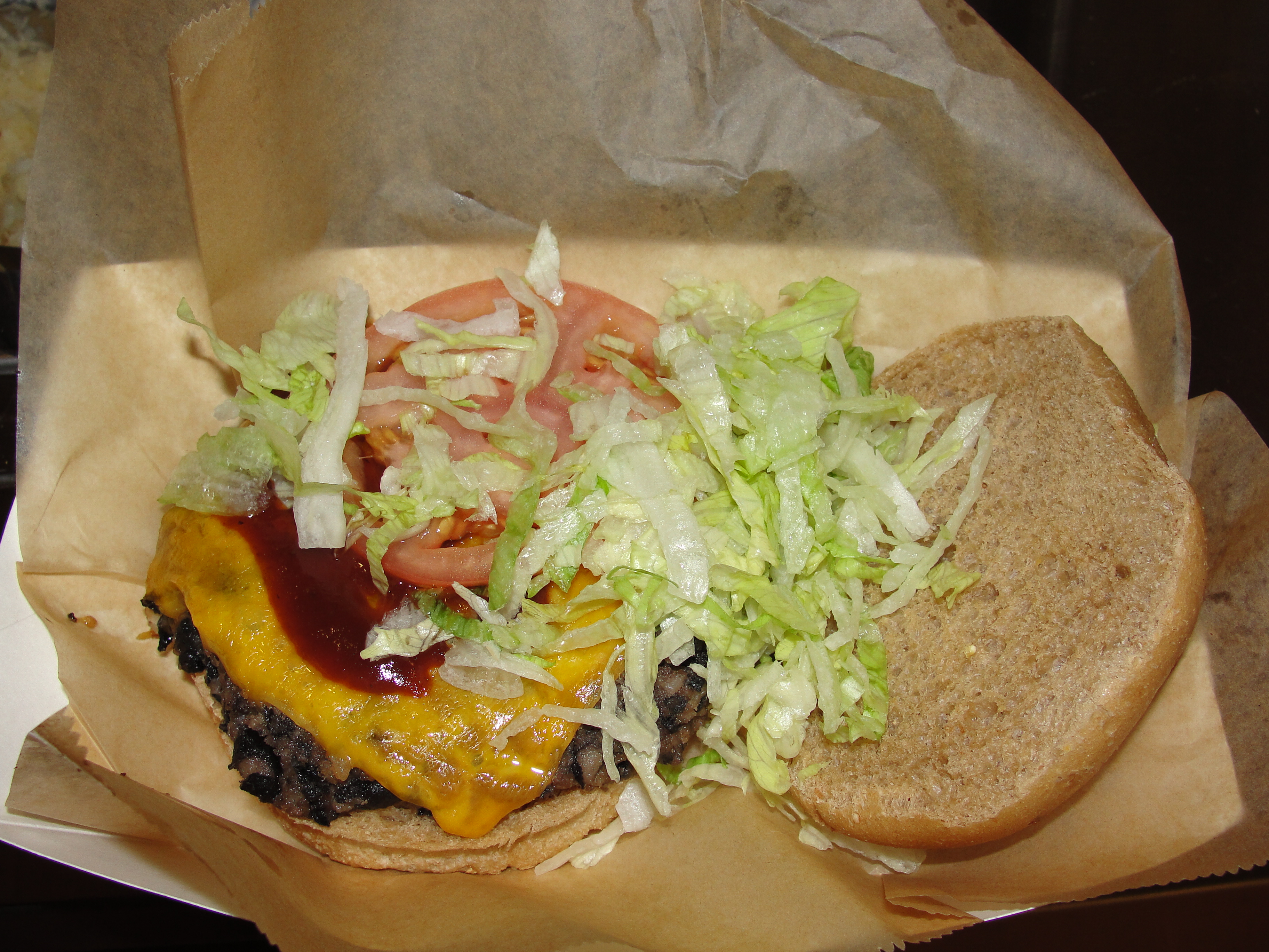 I shared this veggie burger with Mommy and we both really enjoyed it. The wheat bun is soft and has a very subtle wheat flavor. The veggie burger itself tasted very beany and the flavor of the black beans, stood out to me more than the flavor of the white rice. The burger patty was somewhat soggy and only room temperature. The cheese was melted into the burger but did not really have too much flavor on its own. I’m not sure why they opted for bbq sauce, but the flavor was tangy and smoky – not really mixing with the rice & beans flavor in the least. As for the shredded lettuce and the tomato, both were fresh and tasty. We added some spicy mustard to some bites of this burger which I found to enhance the flavor of the patty itself.