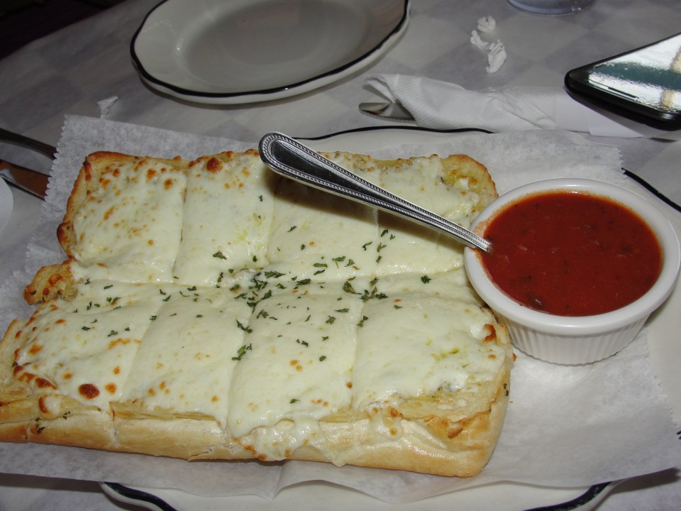 I already knew the main jist of what we would be ordering when we arrived. We also decided to get an appetizer. None of the appetizers really stuck out to any of us so, we played it simple and went with the Cheesy Garlic Bread. After 10 minutes or so, we were served our appetizer. The bread was similar to an opened up sub roll and had a large layer of mozzarella cheese melted on top. I anxiously grabbed a piece and saw the familiar pull of the cheese. I let my piece cool for a few moments, then dug in. While I could certainly taste the cheese, I did not taste any garlic. The bread itself had a crusty exterior and a super gooey interior – blame the cheese. I dipped my piece in some mariana sauce but, I didn’t love the sauce. Overall, the Cheesy Garlic Bread was fine. It was nothing amazing but, good to hold us over.