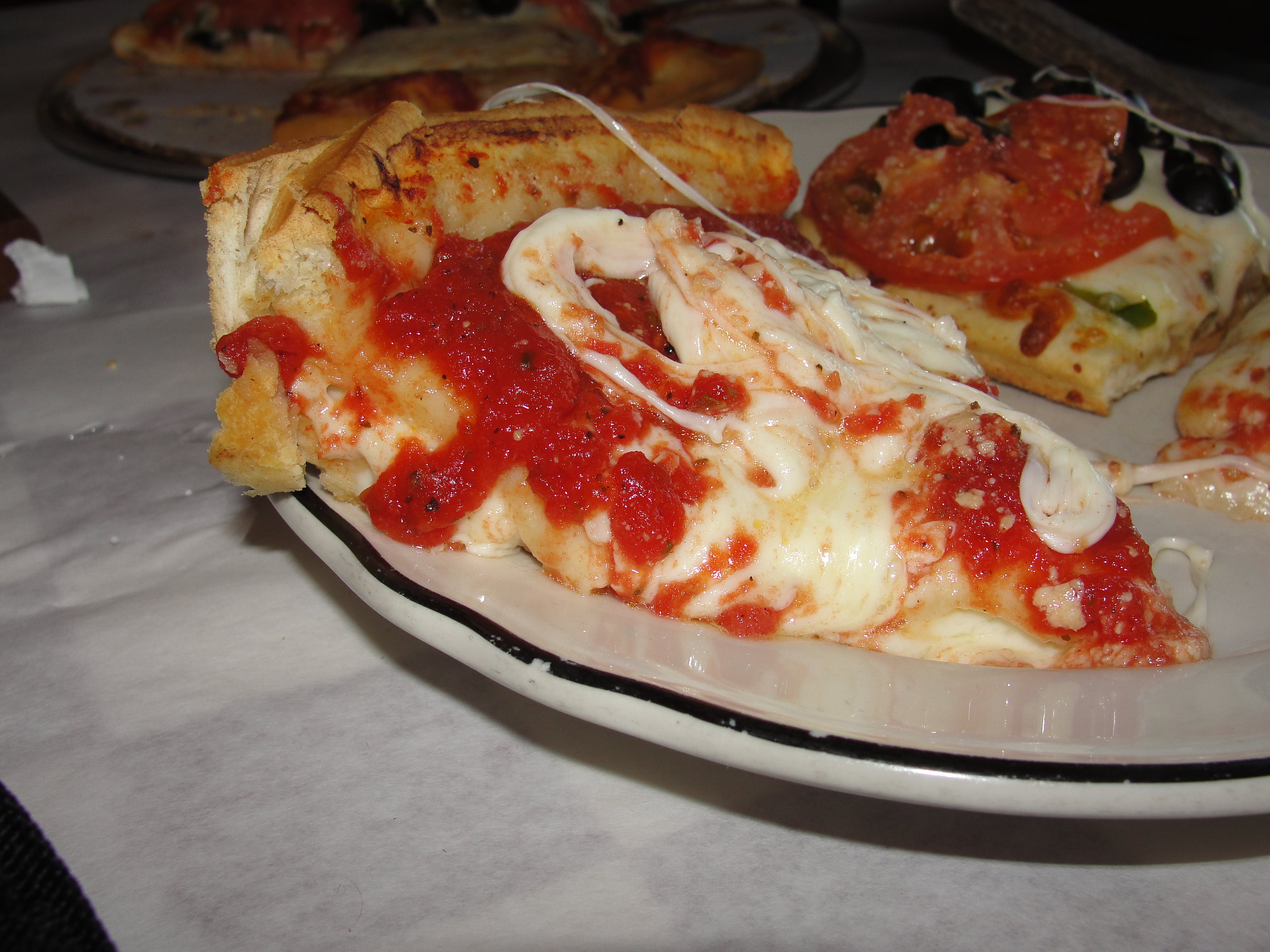 For vacation, we went to Chicago and visited my gparents in Georgia. Let’s start off with our first meal in Chicago. When you think Chicago, you think 3 food items – Hot Dog, Italian Beef and Pizza. Maybe you think more than that but, for me, those are my top 3. I have been researching for months the best places to get all the items. Prior to the trip, I was told that we would not be having Italian Beef. Okay…no biggies, I don’t like it anyway. I was given the green light on pizza and dogs though so, I focused my planning on these 2 items and more. Our first stop would be for pizza.