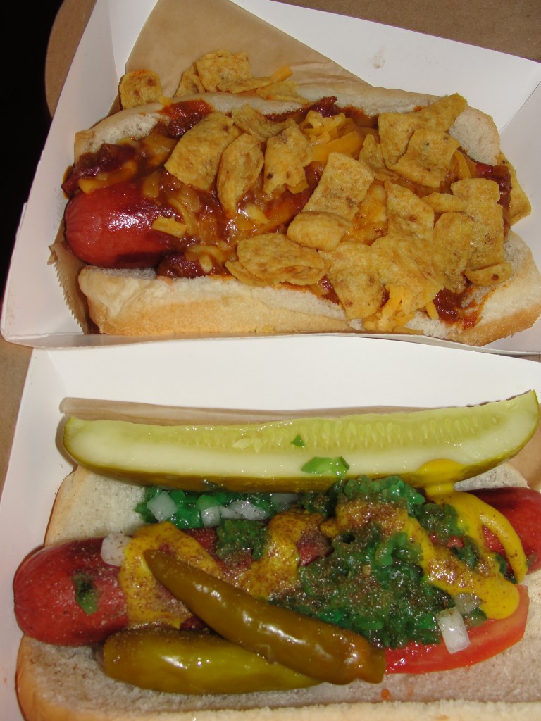 I do not eat hot dogs at all. They are one of those food items that totally gross me out – even just the smell of them. So, I did not visit Chicago and get a dog however, both Mommy and Taylor did (see photo below). When we got to Wrigley, I was hungry and looking for something good. The main food choices are all on the lower level and our seats were pretty high. After walking around for a bit, I needed to make a choice. I wanted to try something different and while ordering the dogs, I also saw they offered Tater Tots in Cheese. I love me some Tater Tots so I opted for these suckers.