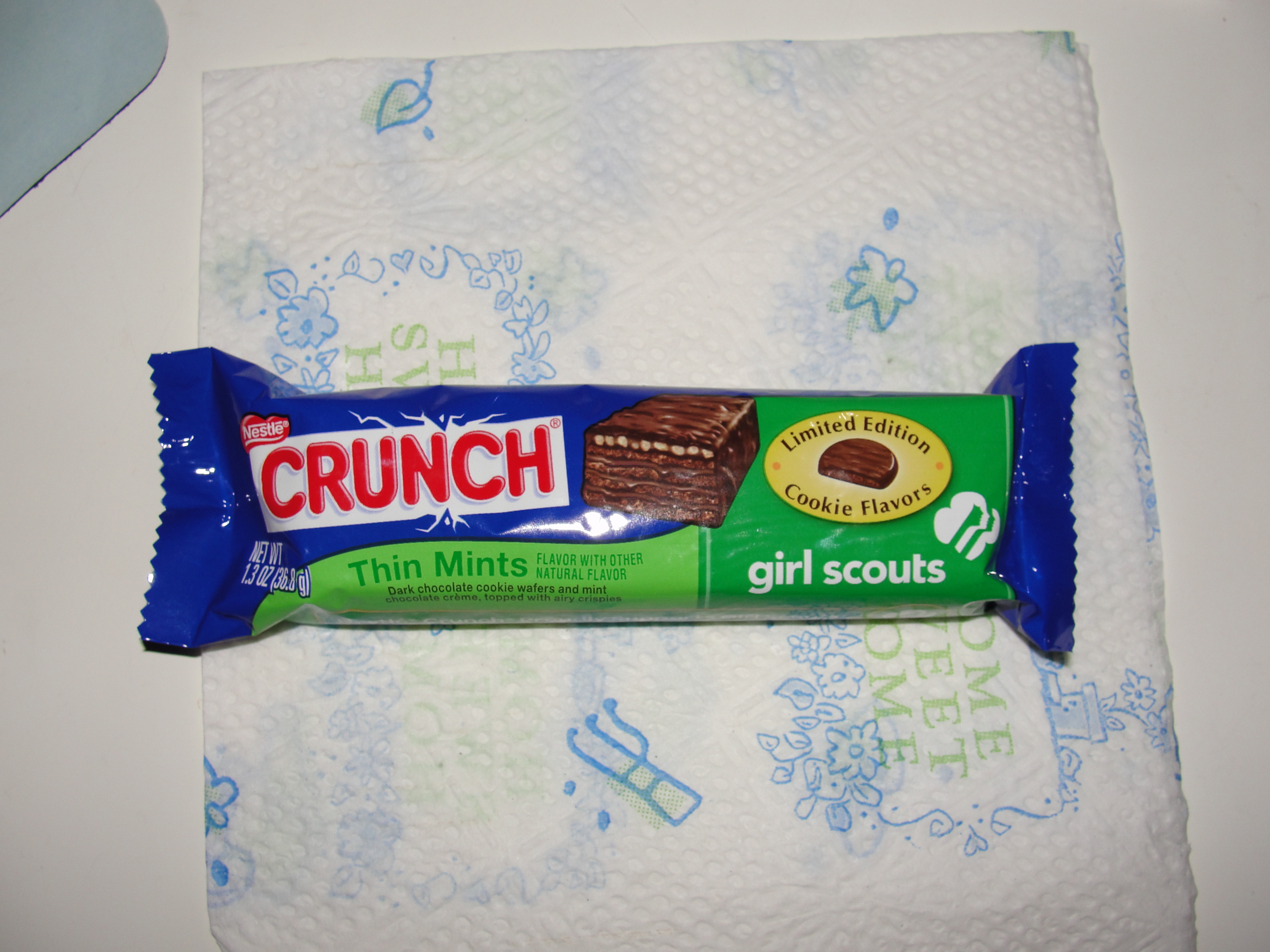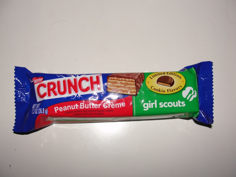 Remember a few months back, during Girl Scout Season, when Grandma’s Backyard reviewed some cookies? Not just any cookies but Girl Scout Cookies? Those cookies we wait all year for, and this year at least, finally get and are disappointed? Well, you should remember because you are a loyal follower and you love this blog. In case you don’t remember, that’s okay because those pesky Girl Scouts decided to team up with Nestle for their next Limited Time Adventure. After many months of talks about this new Adventure, the bars were finally released – Nestle Crunch bars with Girl Scout Cookie Flavors. I won’t lie…I was pretty stoked about these. As soon as I spotted them, I purchased 1 of each flavor, placed them in my Poke Ball and began my Limited Time Adventure.