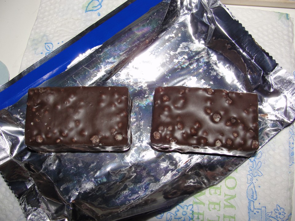 I will review these bars in the order I ate them which just so happens to be the order which I liked them, best to worst. I decided to try the Thin Mint bar first and am glad I did. I had these bars in the pantry – honestly, I didn’t even think about putting them in the fridge – and ate it at room temperature. I was glad to find the bar was in 2 individual pieces within this shiny wrapper. The Crunch pieces on top could be seen from first examination of the bar. I picked up my first piece and took that first bite. Wow, I was pretty shocked – this sucker was good.