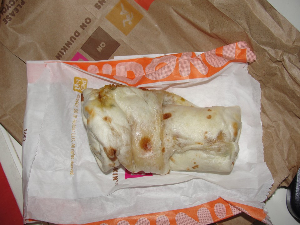 The concept of a Breakfast Burrito, is a pretty awesome thing. Load up some scrambled eggs, veggies, cheese and protein of choice, and you are set to go. Not only do you get to enjoy all of this wrapped in a lovely tortilla but, you also get pretty full and ready to go for the day. How often do I eat Breakfast Burritos? Eh, maybe 4 times a year. Yet, I love them. While I am normally stuck with oatmeal for breakfast, every so often I treat myself to a Chick-fil-A Chicken Burrito and am in heaven. A few months back, Dunkin Donuts introduced 2 of their own breakfast burritos – one steak and one veggie. I was pretty excited about the veggie burrito. Finally, after waiting a while, I went and got myself one. While it was no Chick-fil-A, it was at least One Funky Burrito.