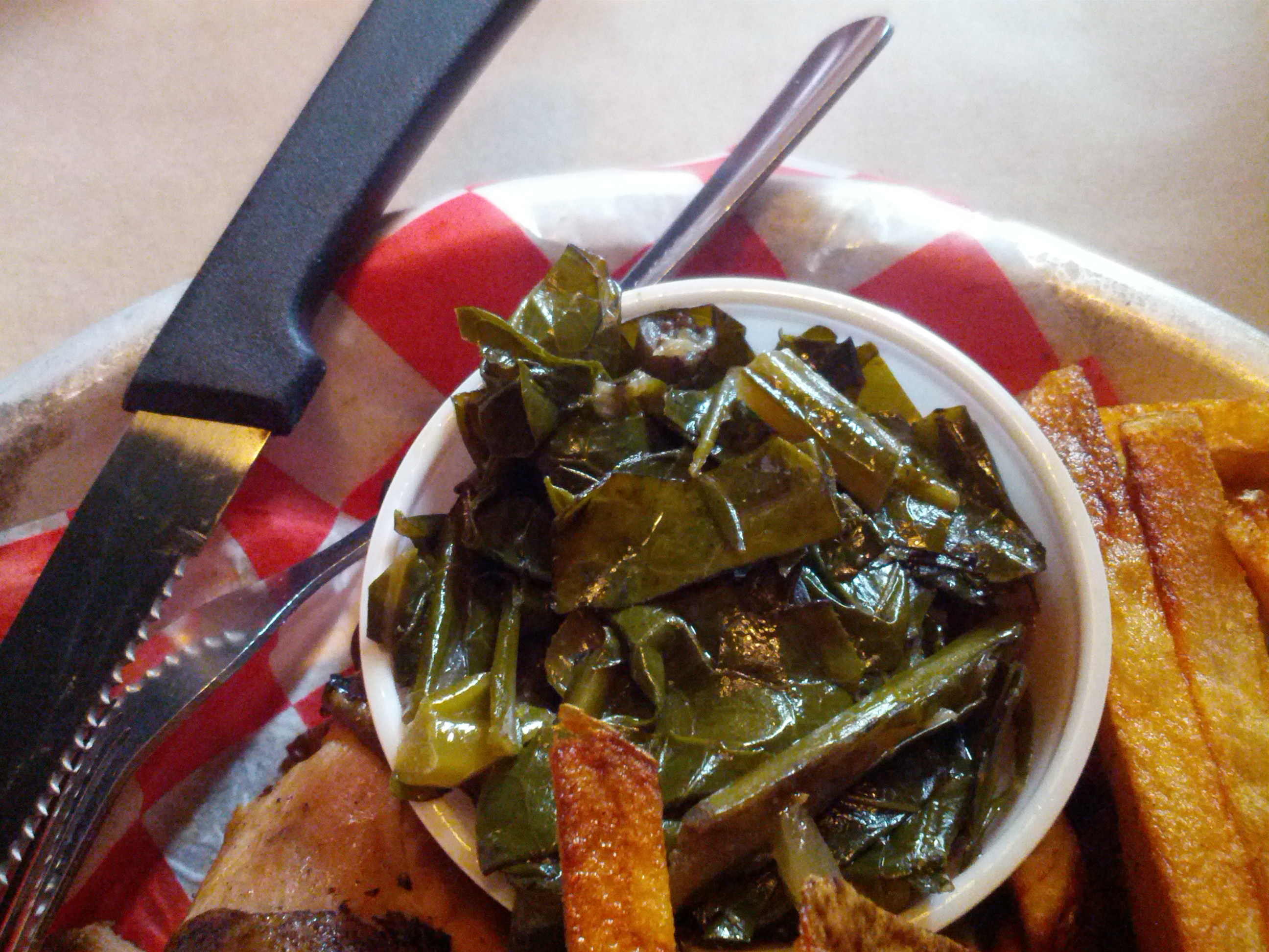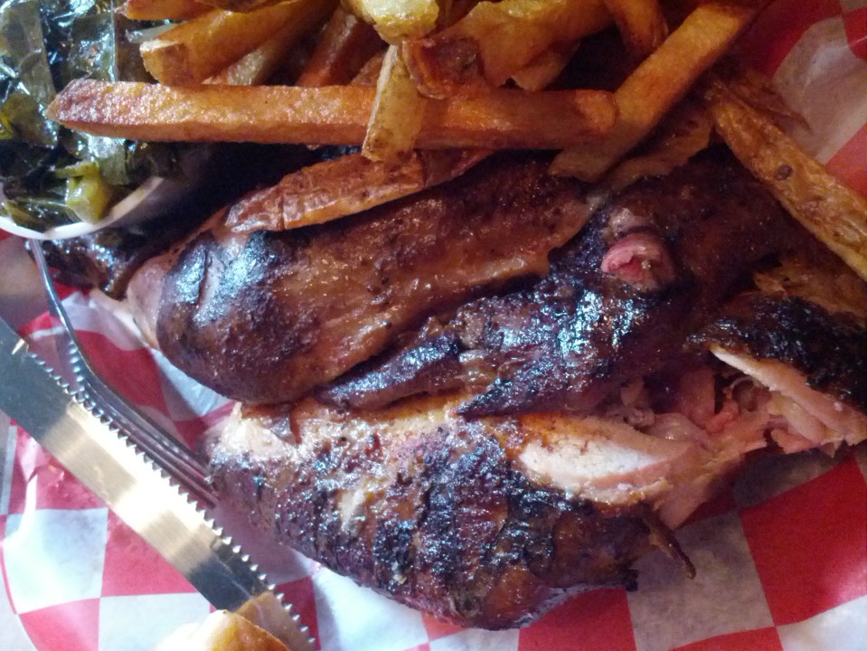 For my meal, I opted for the 1/2 BBQ Chicken with Fresh Cut Fries and Collard Greens for my sides. This was also served with a piece of Texas Toast. On both visits, we also ordered an extra order of fries for everyone to share. Let’s start here then…with the fries. Oh. My. Gosh. These are the best fresh cut fries ever (they may even be a step above Penn Station). Absolutely amazing from start to finish. Each fry has a crazy fresh flavor and just enough salt & seasoning to make them ohh so delicious. The fries have the skin left on and are fried up to done but not over done. From the top of the basket to the bottom of the basket, every fry was amazing. Words can not describe how much I love these fries. I not only ate all of the fries on my plate but, a good chunk of the shared fries. So amazing. If the food sucked, I would return again and again for these killer fries.