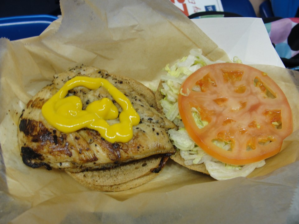 Well, it was fine – it was neither great nor bad. The grilled chicken itself was probably about 1 minute overcooked. If I had that 1 minute back, this sandwich would have been a lot better. The extra minute of cooking, gave the exterior of the chicken a rough & unpleasantly chewy texture. As for the toppings – excellent as always. Very fresh and plentiful, both the lettuce and tomato was a hit in my book. While I would have preferred spicy mustard, the yellow mustard was still tasty and worked well with the sandwich. I opted to only eat half of the bun, and it was probably good last month. I found the bun to be quite stale and the pleasant whole wheat taste, to by purely missing. On past visits, this bun was much better. Overall, the sandwich was tasty and pretty filling.