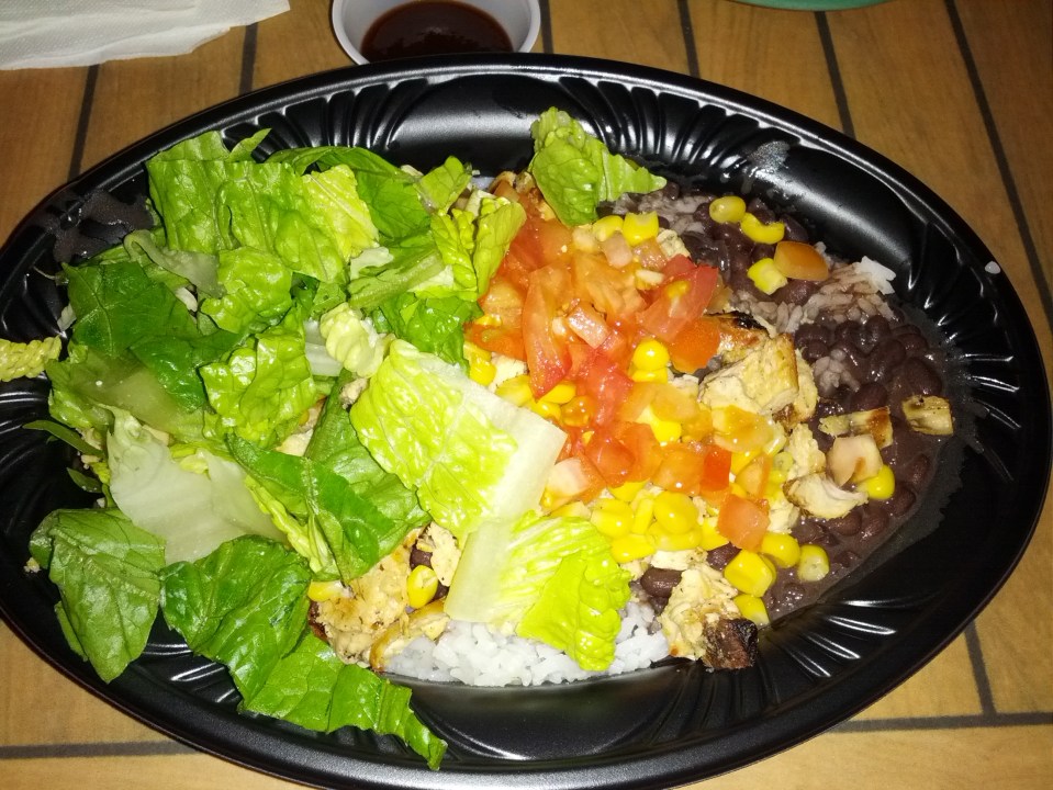 Once our food was brought to the table, I wanted to dig in right away. The bowl is beyond full of everything and smells divine. I first mix everything around and then dig right in. Let’s work from the bottom layer up. I have tried both the white and brown rice and find I prefer the white rice. It is sticky, soft and has just enough flavor. It allows all of the other flavors to work with it. The beans are probably the best black beans I have ever had. Every single bite produces the fantastic flavor which is not at all salty and just soft enough. The lettuce, tomatoes and corn are all very fresh and crisp. As for the chicken, it has a great fresh taste to it. It is cooked right behind the counter, in front of you, on a grill. Every single piece has a slightly charred/crisp outside while still managing to maintain a moist interior. It is hard to describe exactly what the chicken tastes like since the flavors are so simple. Delicious is a good way to describe it.