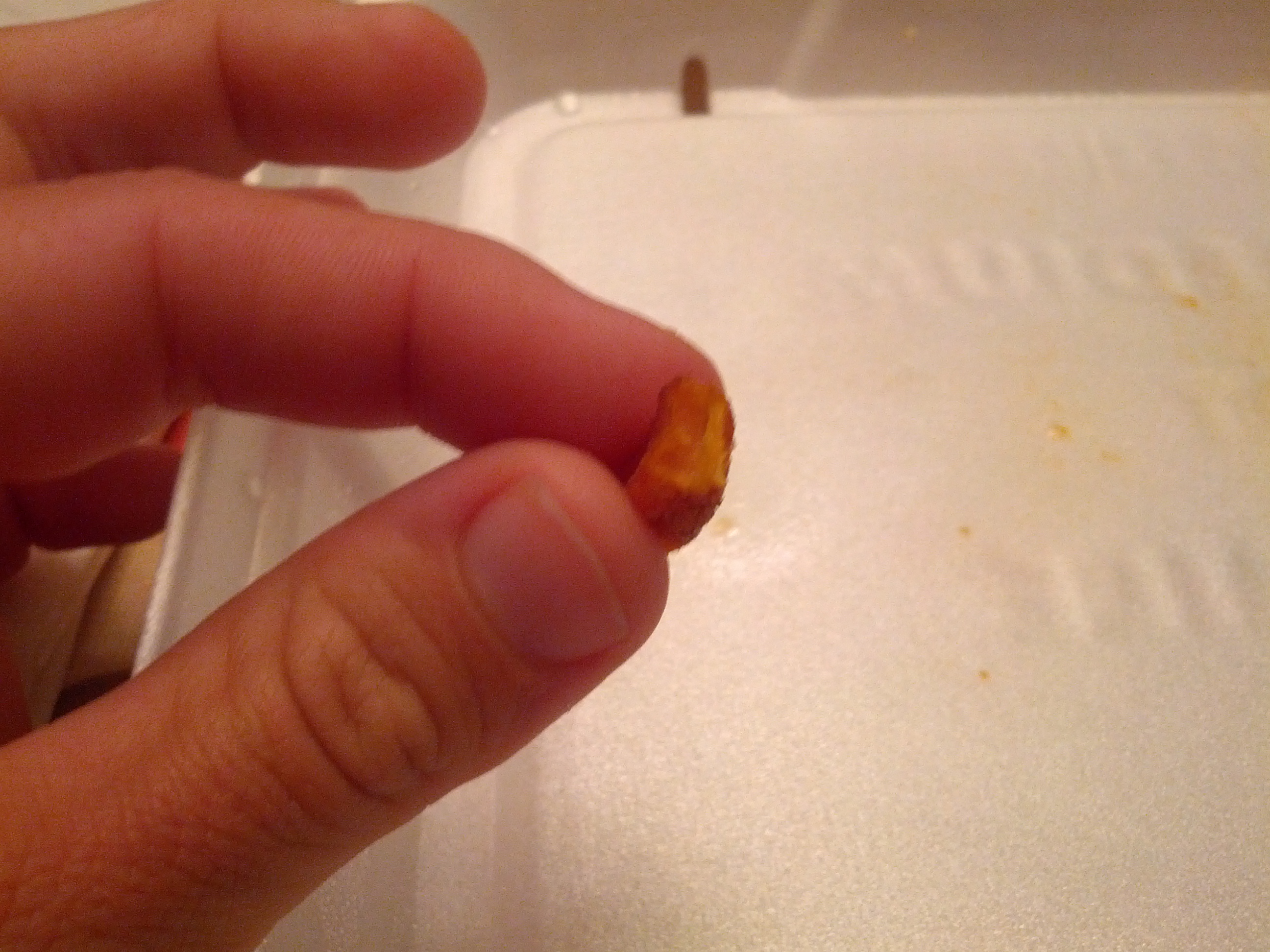 I found the seasoning – cinnamon in nature – to not work as well with the fries as it could have. The flavor of the cinnamon was too false, the potato pieces too lacking – the overall product just not quite there. I did see quite a bit of taste improvement on my actual curly fries – the cinnamon provided a basic coating for the sweet & starchy fry. If only I could have had a bag full of these, I would declare these a sure winner. Unlucky for me, this was not the case. What a bummer.