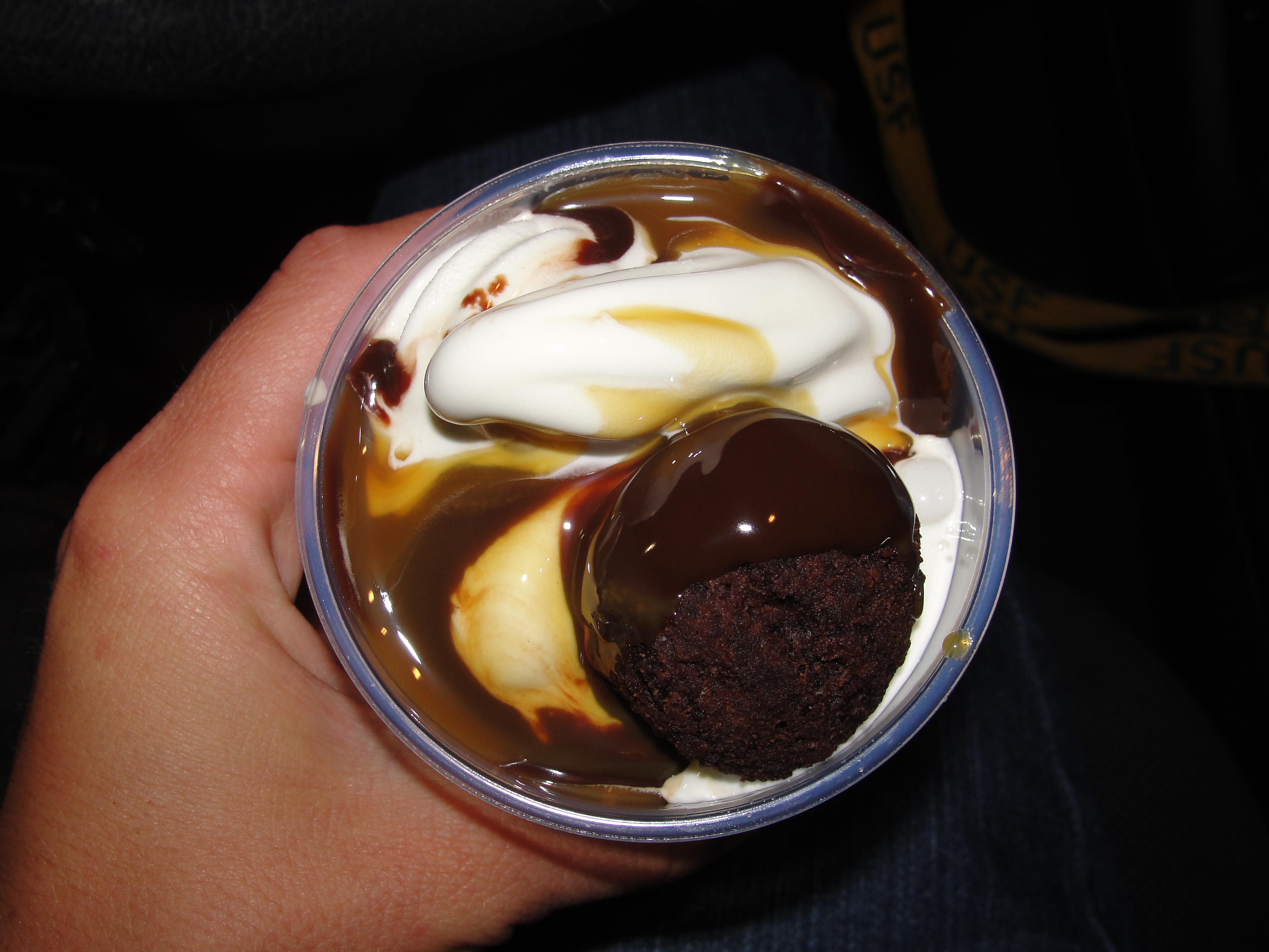 I would have liked if the sundae had more bites but, I think it was still quite tasty overall. I loved how the cold ice cream paired with the warm, molten bite. Now, as for the bites, they were good. While I would not say that the interior was molten, it was ooey & gooey. This was similar to the consistency of brownie batter after it has been in the oven for a few minutes. It was a bit dense yet, still had enough of a liquidy feel to be gooey.