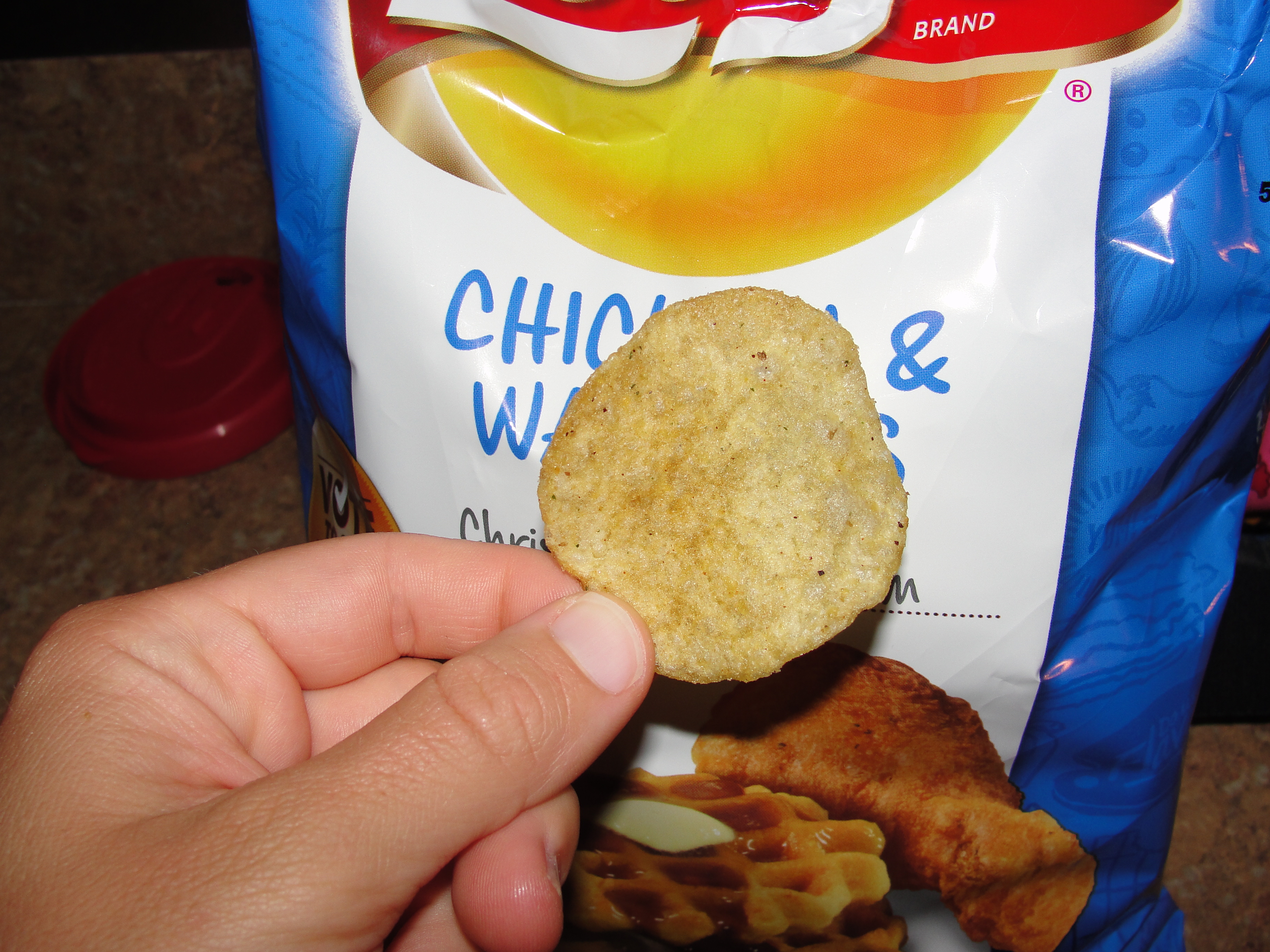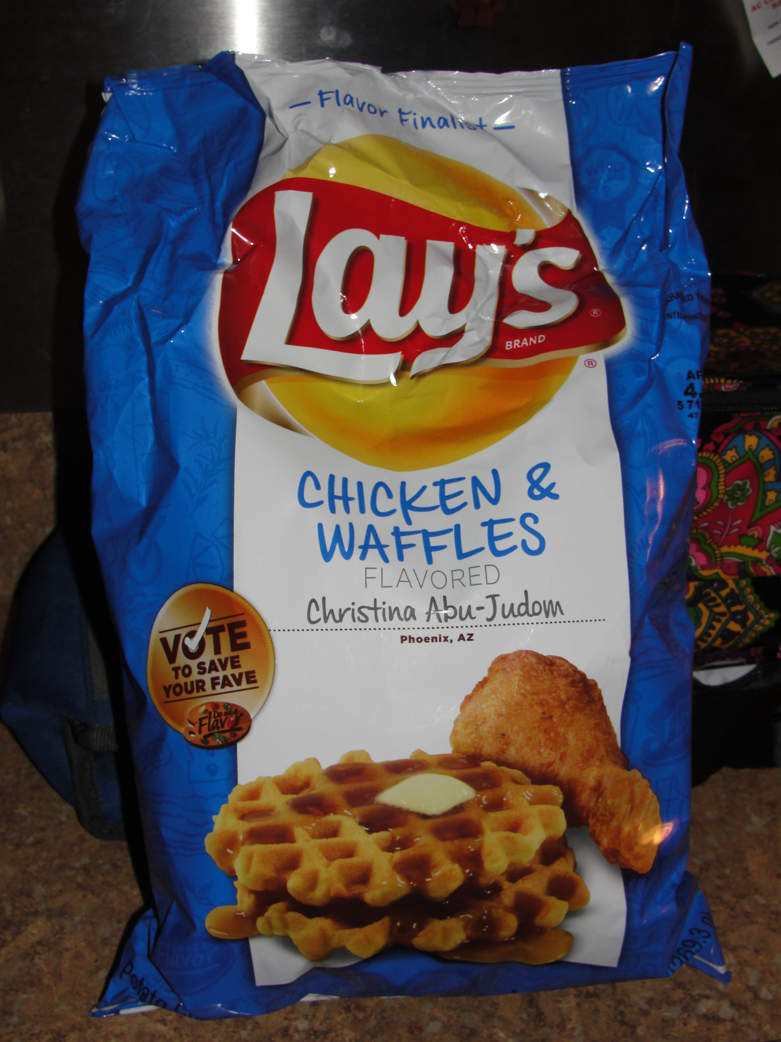 I absolutely love waffles. Homemade waffles are by far one of my favorite things to eat. I love to make them then, while they are hot, dip them into insane amounts of syrup. Mommy says that I am a diabetic in training. Its pretty gross just how much syrup I dip them into. On the occasions I make them, Mommy and Taylor watch me eating them as if I was a monkey at the zoo. I love waffles on their own, with nothing but syrup. I have never had the classic Southern combination of Chicken and Waffles but, when I heard Lay’s was coming out with a chip of this flavor, I knew I had to try it. Lucky for me, on a trip to Wal-Mart last week, I spotted the chips. Let’s just say these are Not Your Typical Chips.