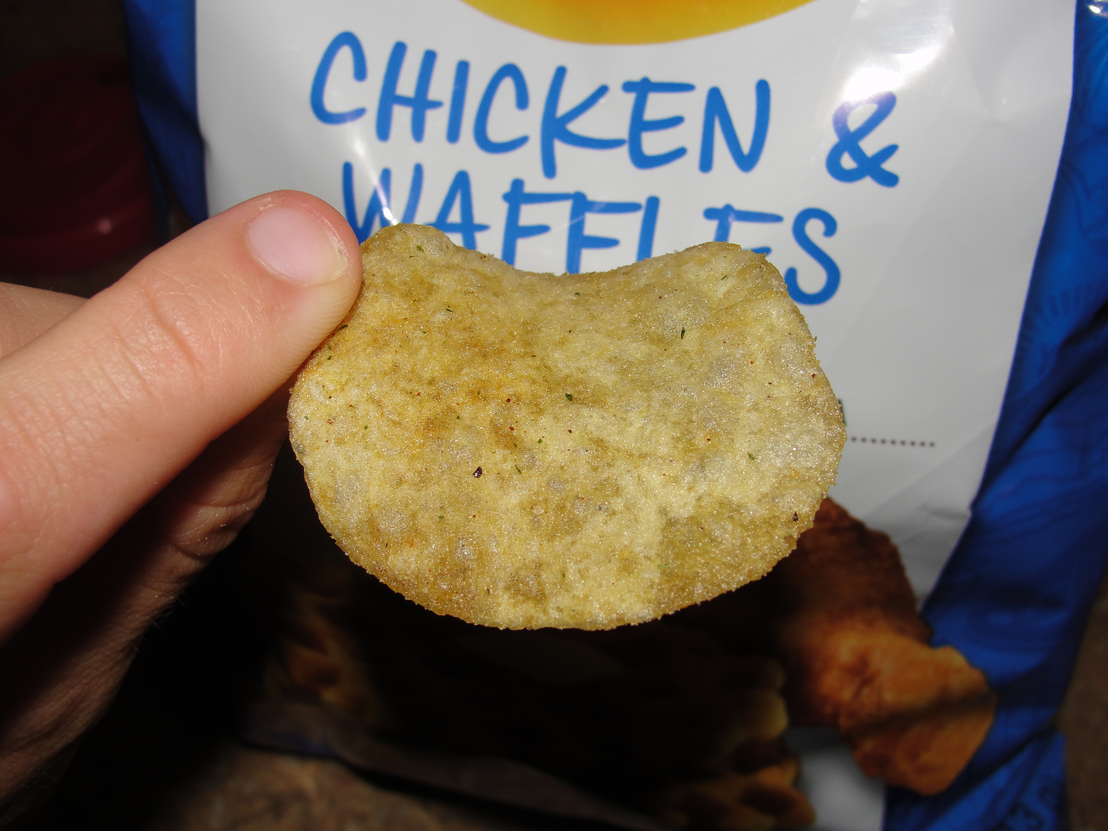 I had read a review of these chips last week and the blogger did not like them at all. I went into these chips with no opinion at all – I simply wanted to see what they were all about. When I opened the bag, I was not hit with any overwhelming flavors. Removing some chips, I found them to be thicker than a normal chip – closer to a kettle cooked chip yet, not quite as crispy. The chips looked more similar to regular chips, with a dousing of seasoning, then the shape that kettle chips take. With no reservations, I tried my very first Chicken and Waffles potato chip.