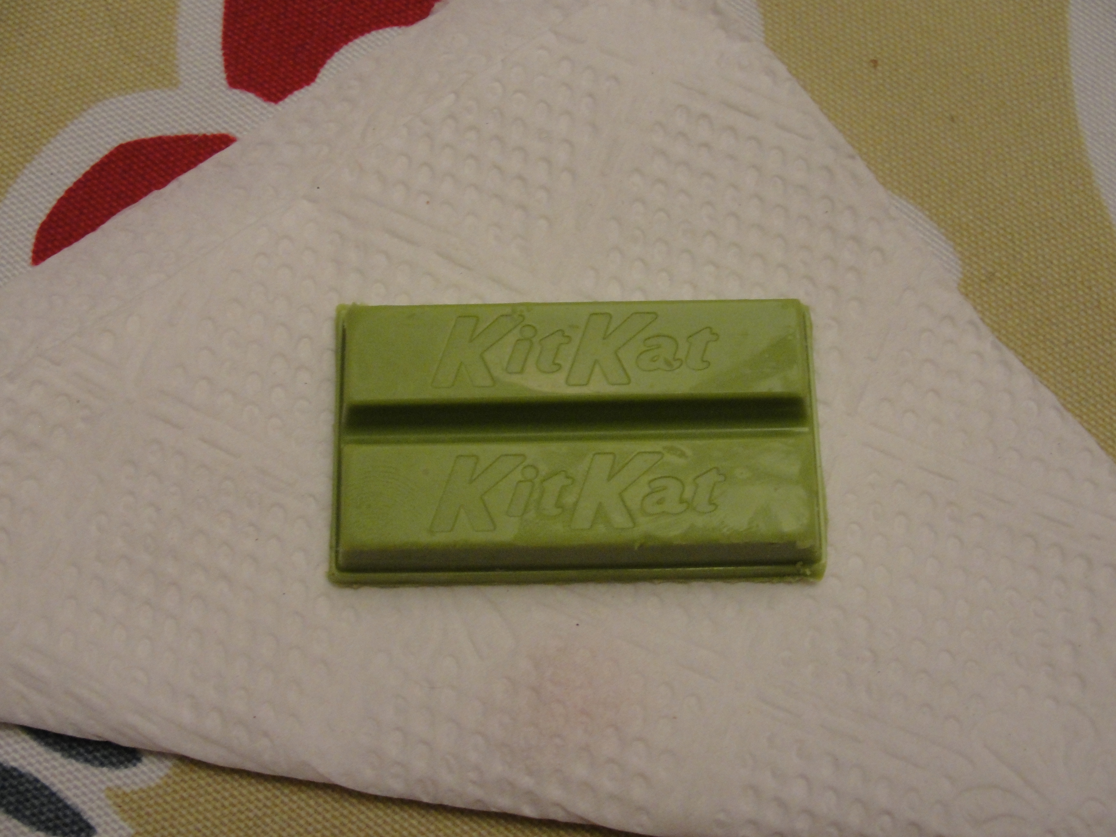 Right away, I liked this Kit Kat wayyy more. The flavor of the white chocolate was much more apparent and, as far as I could tell, there was no green tea. I guess it did have a little bit of a back taste – like something was mixing with the chocolate – but, it was not strong enough to allow me to figure out quite what it was. The crispy wafer paired much better with the pea soup green white chocolate. This was crispy, refreshing and just sweet enough. I loved this one and can totally see myself going back and eating the rest of the box. While not quite a US Kit Kat, this thing was awesome in its own sense.