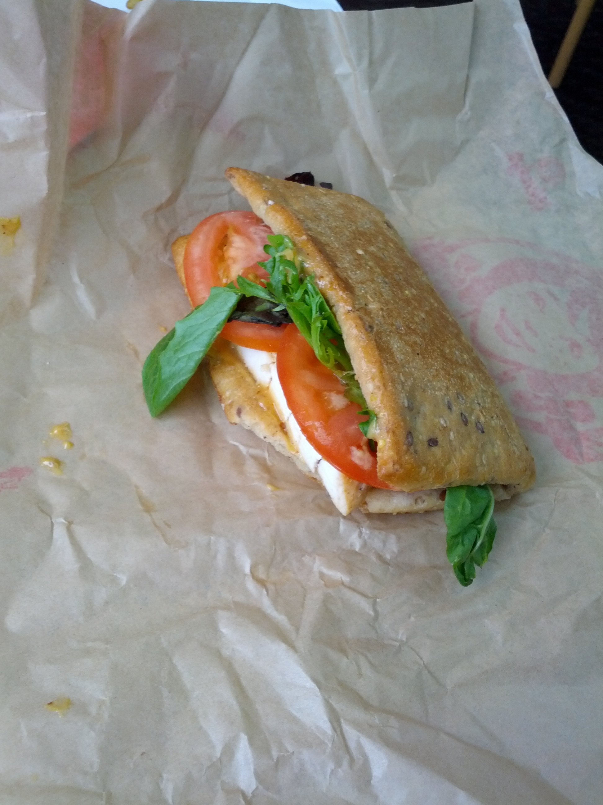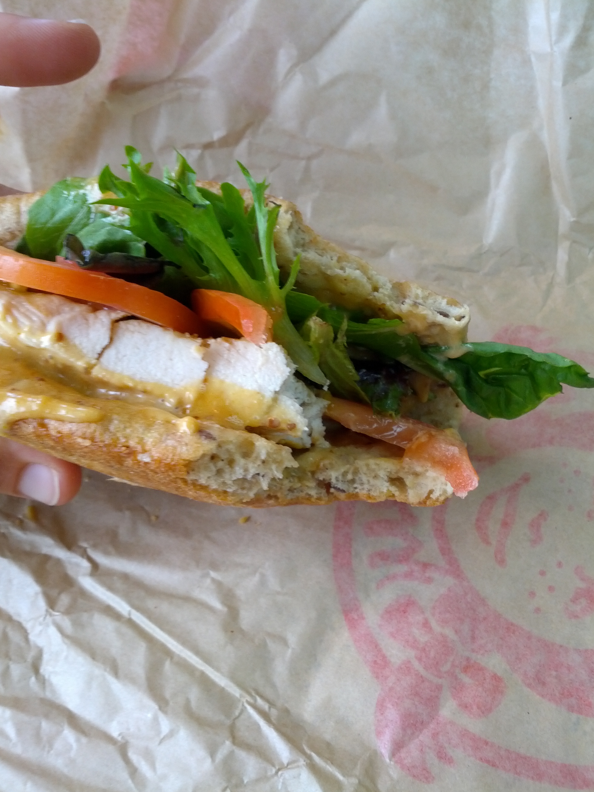 My first bite was a mix of all of the ingredients – nothing was missing. The flatbread was great. A perfect combination of sweet, chewy, multi-grainy goodness filled my mouth as I chewed. It was perfectly warm and simply delicious. Even with no toppings, this thing would be rocking. The lettuce was a variety of different lettuce types, all of which were quite good. I appreciated the fact that higher quality lettuce was used…and the flavors of the variety did indeed shine through. I found the tomato slice to be perhaps a bit on the thick side but, tasty and fresh all the same. As for the grilled chicken, it was the normal Wendy’s grilled chicken. It was warm and had a slightly grilled flavor to it. Plus, it was not salty at all. The honey mustard sauce was there but, I did not feel as if the flavors really stood out. It brought it all together but was not the main star.