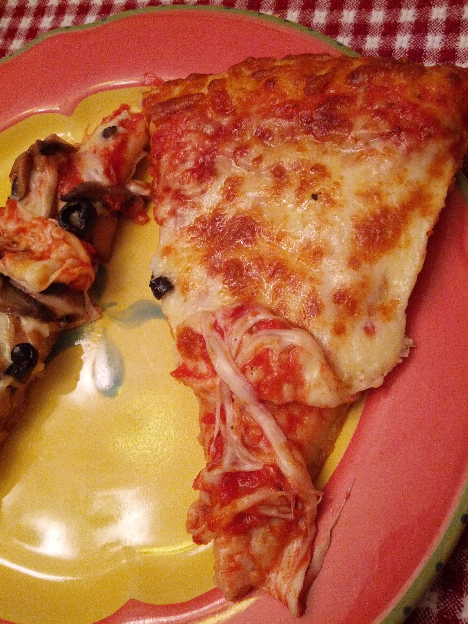 I then tried a piece of the Mushroom & Olive and liked it even more. There were a TON of toppings on this piece of pizza. The additional flavors and texture of the mushrooms & olives, really increased my overall liking of this pizza. I found these toppings to work really well with the gooey cheese, simple sauce and sturdy crust. I had no problem eating multiple slices of both this and the cheese pizza. I had one piece left over that I stored in the refrigerator and ate cold last night. Well, Jet’s passed the fridge test – the pizza was even better right out of the fridge. This is a standard test that pizza must pass in order for me to eat it again.
