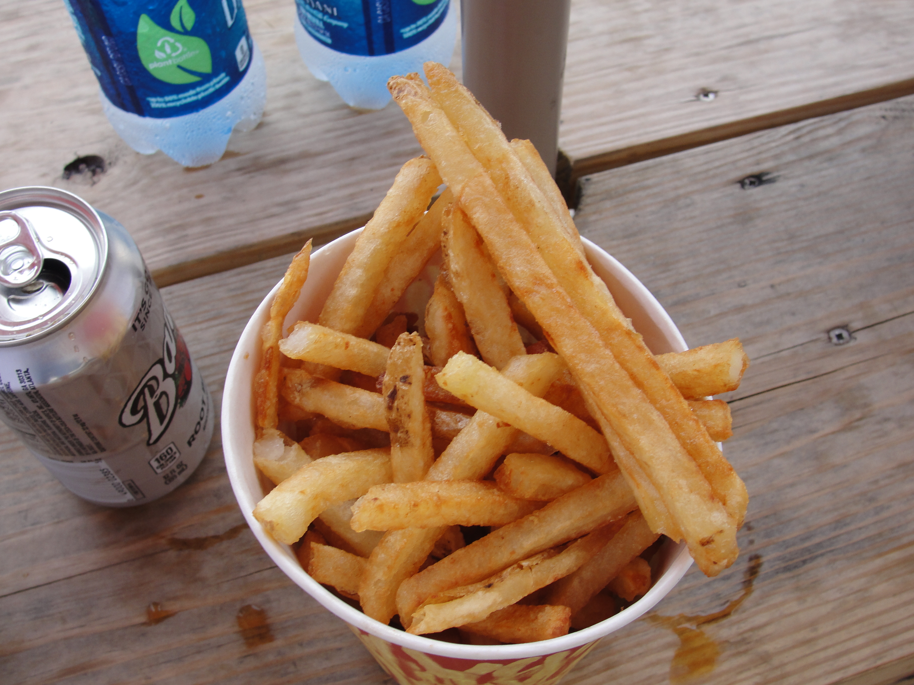 In addition to the sandwich, we got a large order of fries. This was more than enough for the 3 of us to share. I found these fries to be pretty boring. They lacked flavor and were fried up a little bit too much for my liking. These are referred to as ‘Boardwalk Fries.’ Adding some ketchup to these made them better, and of course we had no problem finishing them, but, I wouldn’t need to have them again. While these are fresh cut, I just really wasn’t digging them. We also ordered a root beer float to share however, I only got to try a bit of the ice cream that was left. So, it’s unfair for me to really judge this.