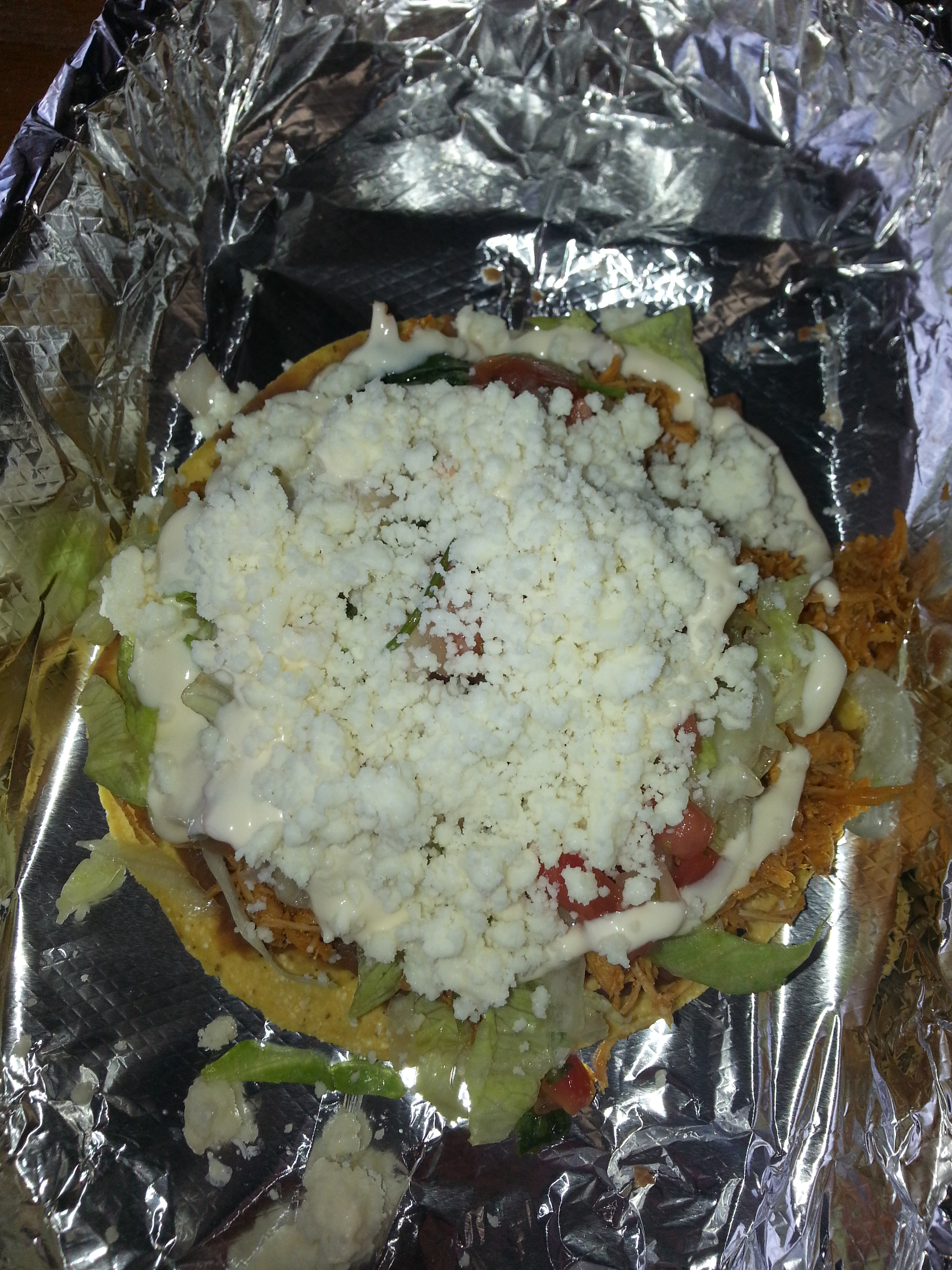 First up, we will discuss the Chicken Tostada. Ohh Snap – I haven’t even mentioned the name of the location! We went to El Agave Azul which is located off SR 84 in Ft. Lauderdale. This is a true hole-in-the-wall with a simple sign of ‘Tacos’ outside of the location. We arrived for a late lunch/early dinner and ventured inside. The wait staff was great and we placed our order…and kept placing it…and placing it. It never ended.
