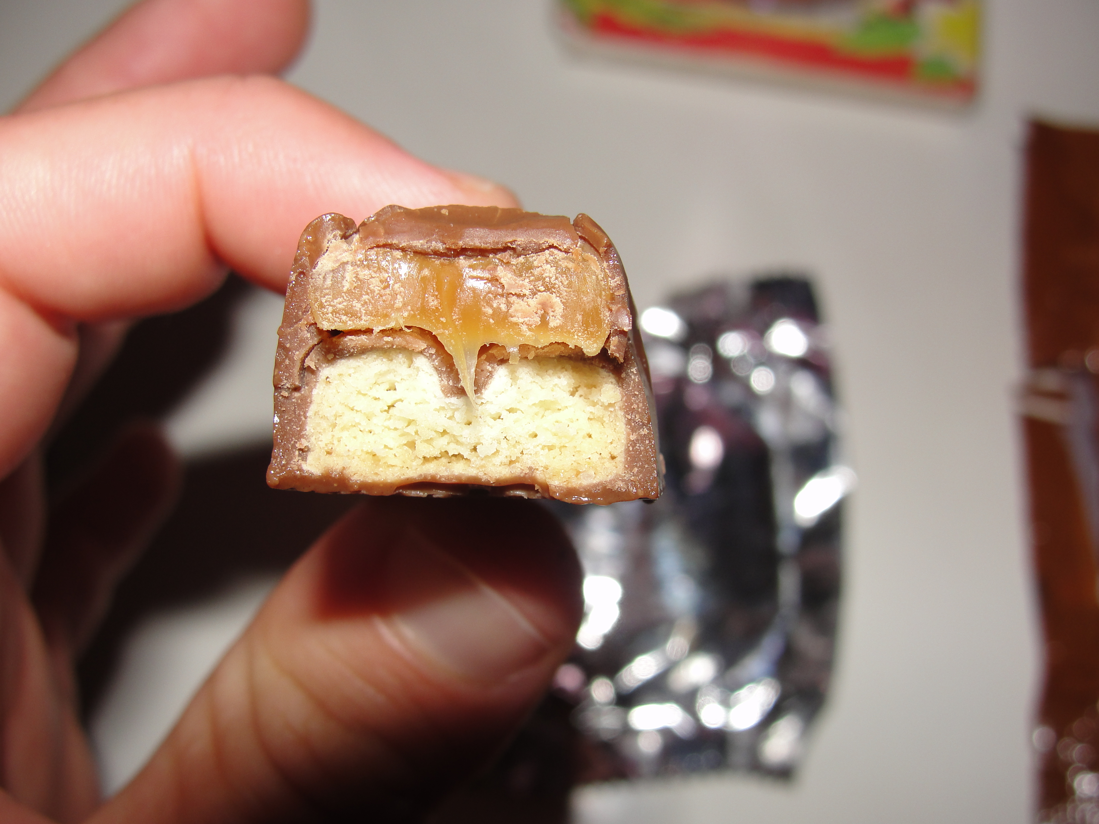 These Twix come in a standard pack and have a lovely little Gingerbread on the front of the bag. At first glance, this looks like a typical Twix. The secret with these, comes with the Caramel. This is not your typical Caramel but rather Gingerbread flavored Caramel. And ohh yes, its tasty. I enjoy eating the Twix all in one bit but, biting it in half allows you an extra few moments with the array of flavors. The Twix itself stays consistent with a normal Twix. But, thanks to the Caramel, this Twix is set apart.